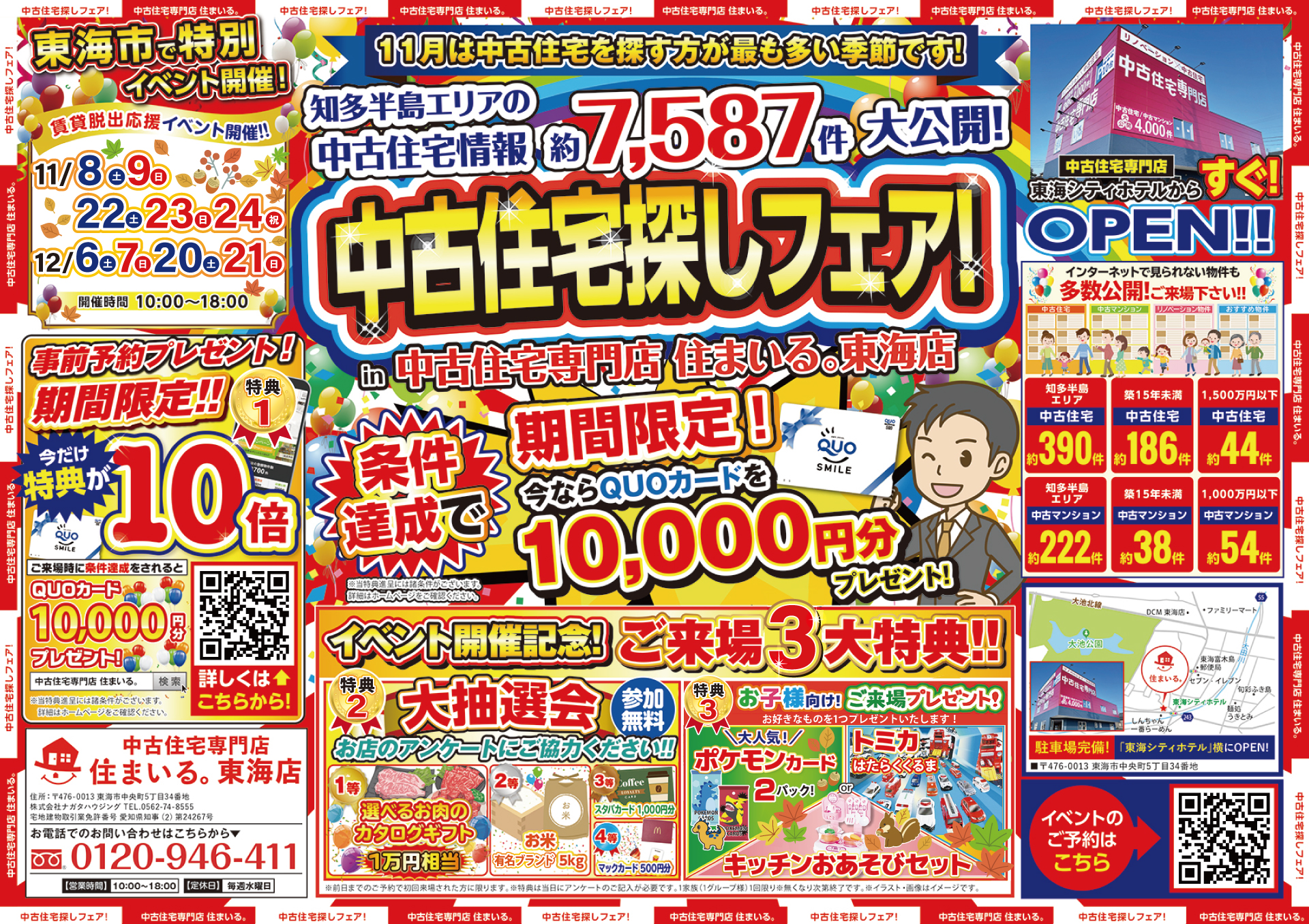 中古住宅専門店住まいる。東海店では、2025年11月8日(土)・9日(日)・22日(土)・23日(日)・24日(祝)・12月6日(土)・7日(日)・20日(土)・21日(日)に、『中古住宅探しフェス!』を開催いたします!