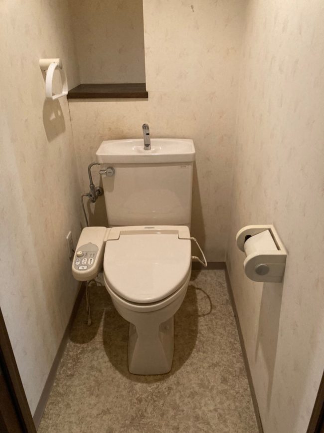 - フチレス形状で便器の掃除がラクラク!お掃除リフトアップで便器と便座の隙間汚れが奥まで楽に拭き取れて、気になるにおいの元もカットできます!強力洗浄の超節水トイレなので、4人家族が使用しても3日でお風呂1杯以上の節水効果。家計にも優しいです♪また、奥の壁紙を清潔感が感じられる水色に変えました。一面を色替えすることにより広く見えますね!照明もLEDライトに変え、より明るくなりました。
