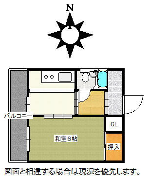 | 間取り | 1K | 間取り内訳 | 和6畳×1室 |