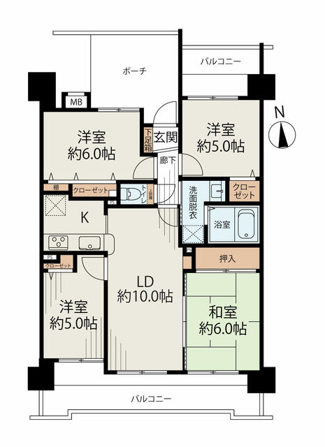 | 間取り | 4LDK | 間取り内訳 | 和6畳×1室 洋5畳×2室 洋6畳×1室 |