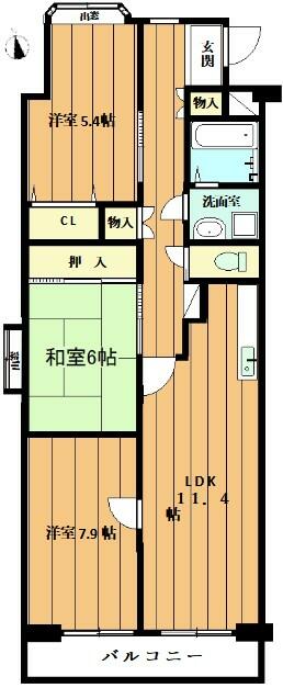 間取り | 3LDK | 間取り内訳 | LDK11.4畳 和6畳 洋7.9畳 洋11.4畳 |