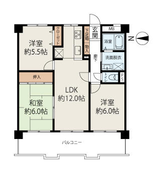 | 間取り | 3LDK | 間取り内訳 | 和6畳×1室 洋5.5畳×1室 洋6畳×1室 LDK12畳×1室 |