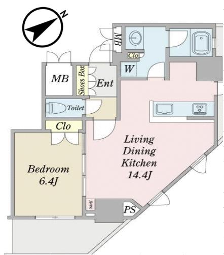 | 間取り | 1LDK | 間取り内訳 | LDK14.4畳 洋6.4畳 |