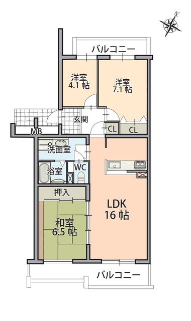 | 間取り | 3LDK | 間取り内訳 | 和6.5畳 洋7.1畳 洋4.1畳 |