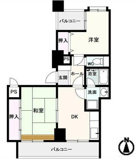 | 間取り | 2DK | 間取り内訳 | DK5.5畳 和6畳 洋4.5畳 |