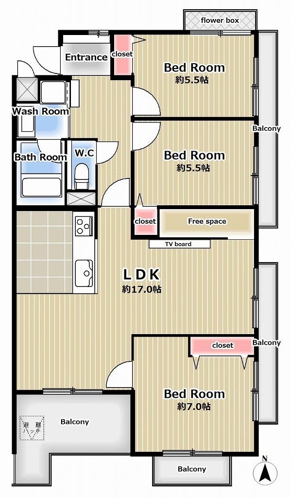 | バルコニー面積 | 15.68㎡ | 向き | 南 |
