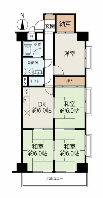 | 間取り | 3LDK | 間取り内訳 | 和6畳×3室 DK6畳×1室 |