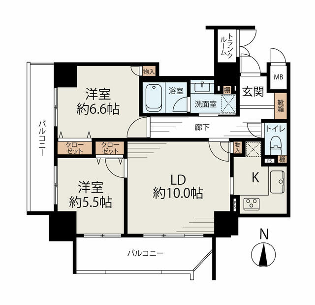 間取り | 2LDK | 間取り内訳 | 洋5.5畳×1室 洋6.6畳×1室 |