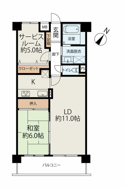 | 間取り | 1SLDK | 間取り内訳 | 和6畳×1室 S5畳×1室 |