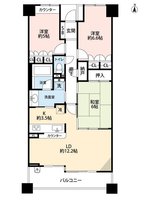| 間取り | 3SLDK | 間取り内訳 | 和6畳 洋6.6畳 洋5畳 |
