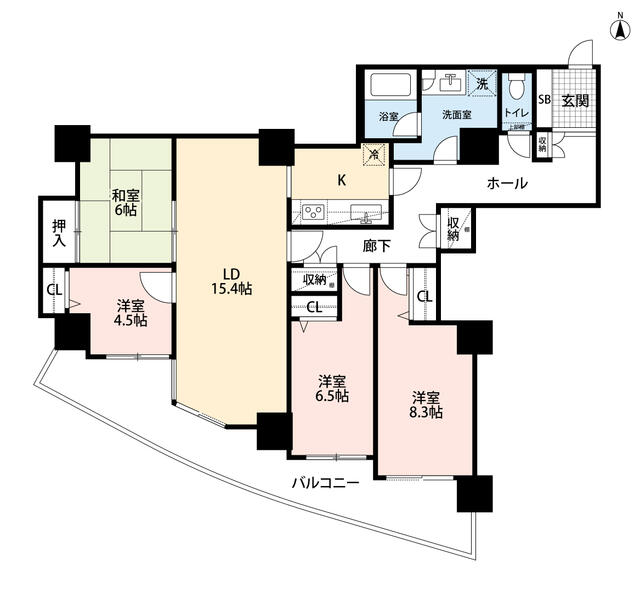 | 間取り | 4LDK | 間取り内訳 | 和6畳×1室 洋6.5畳×1室 洋8.3畳×1室 洋4.5畳×1室 LDK19.4畳×1室 |