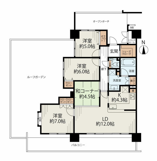 | 間取り | 4LDK | 間取り内訳 | 和4.5畳×1室 洋5畳×1室 洋6畳×1室 洋7畳×1室 LDK16.3畳×1室 |