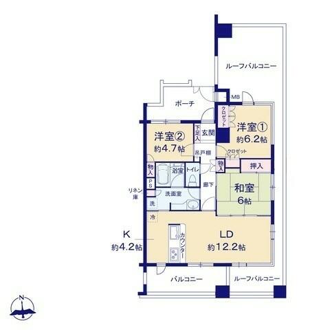 | 間取り | 3LDK | 間取り内訳 | LDK16.4畳 和6畳 洋4.7畳 洋6.2畳 |